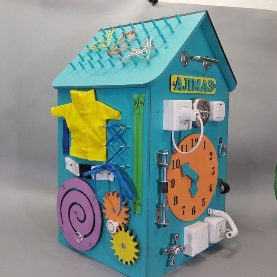Бизиборд Домик 50х30 см со светом мятный с часами